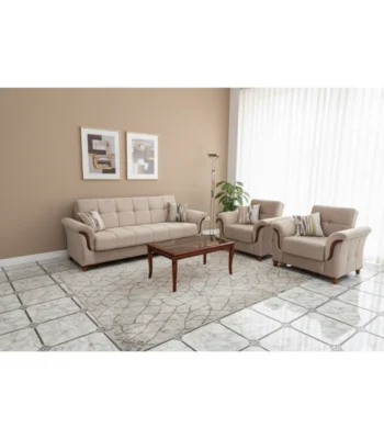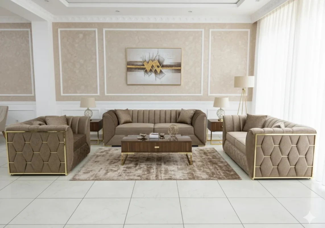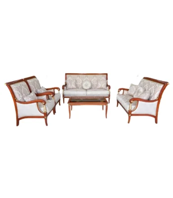Apportez une touche d'élégance intemporelle à votre intérieur avec ce salon raffiné, soigneusement fabriqué avec du bois massif et des finitions dorées.
